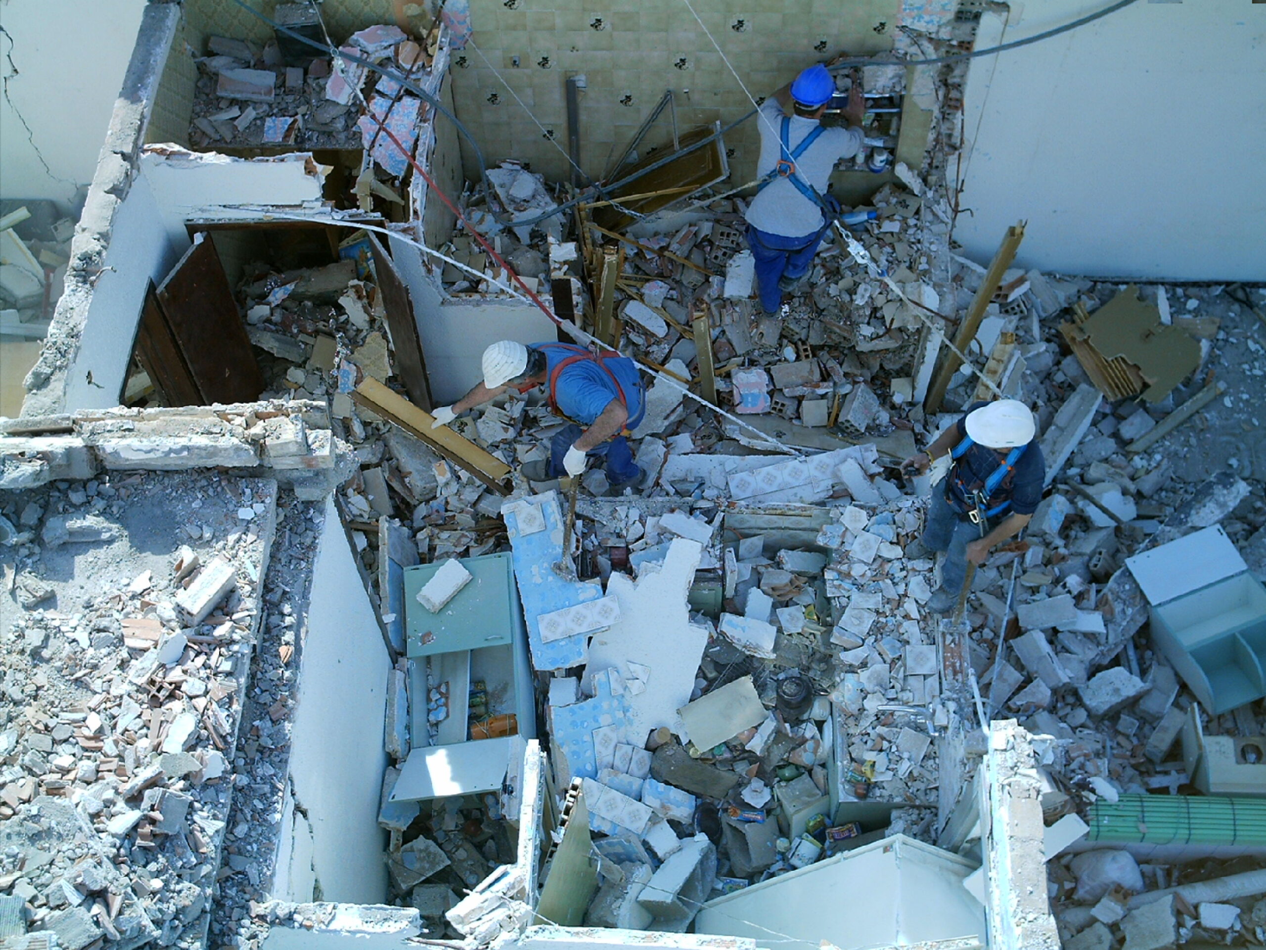 Demolición de edificios afectados por el hundimiento del túnel del Carmel.
